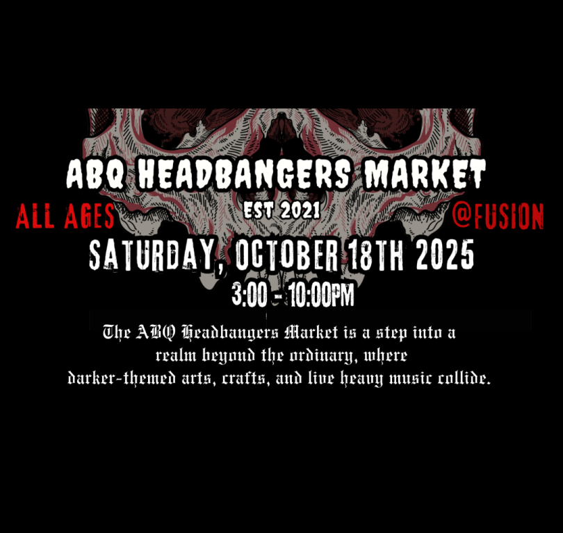 In the short time they have been around, they have developed a strong following and, to their surprise, we were recently nominated as Top 5 of the 2024 in the "Best Annually Produced Event” category of the New Mexico Entertainment Magazine. This will be their 6th Headbanger’s Market and they’re looking forward to, once again, expanding our audience through FUSION!