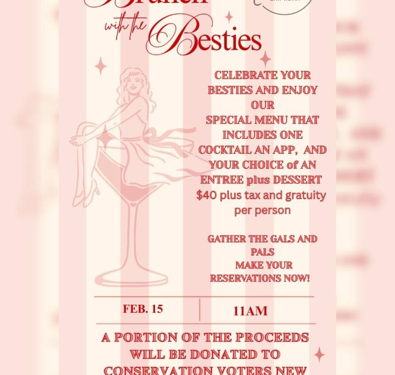 Brunch with the Besties Dates: February 15, 2026 Location: M'tucci's Bar Roma 3222 Central Ave. S.E., Route 66 & Wellesley Dr. S.E., Albuquerque, NM 87106 Time: 11:00 AM Price: $40 Add to Trip Overview CELEBRATE YOUR BESTIES AND ENJOY OUR SPECIAL MENU THAT INCLUDES ONE COCKTAIL AN APP, AND YOUR CHOICE OF AN ENTREE plus DESSERT $40 plus tax and gratuity per person GATHER THE GALS AND PALS MAKE YOUR RESERVATIONS NOW! Map