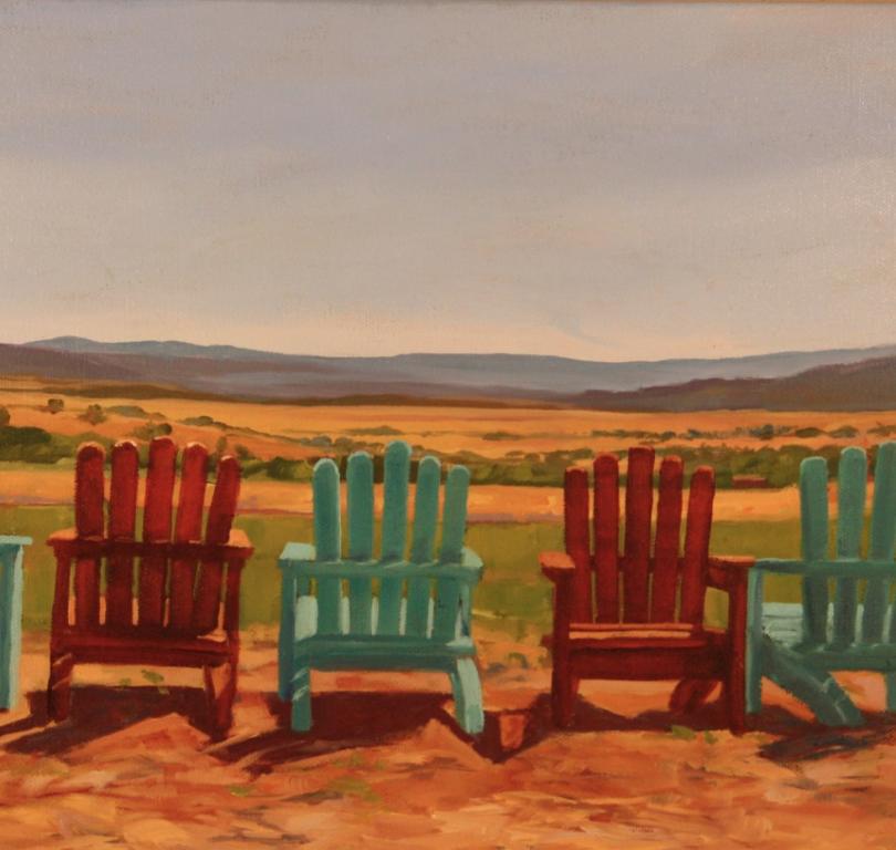 Have a Seat invites you to explore the beauty of New Mexico, from national parks to lively main streets and quiet front porches. Take a seat, relax and enjoy the view through this series of oil paintings. Few things are as inviting as an Adirondack chair in a garden, a bench with a mountain view, or a porch swing that feels like home. Where we sit shapes how we connect with our surroundings.