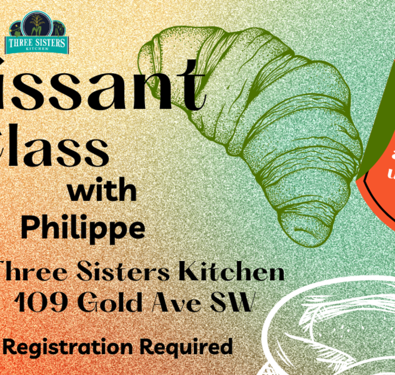 Learn the art of making mouthwatering croissants from scratch with pastry chef Philippe! Join us for a fun-filled croissant baking class at Three Sisters Kitchen and learn the secrets to making flaky, buttery croissants from scratch! Tickets are $95, and sliding scale is available. Please reach out to isha@threesisterskitchen.org for inquiries.