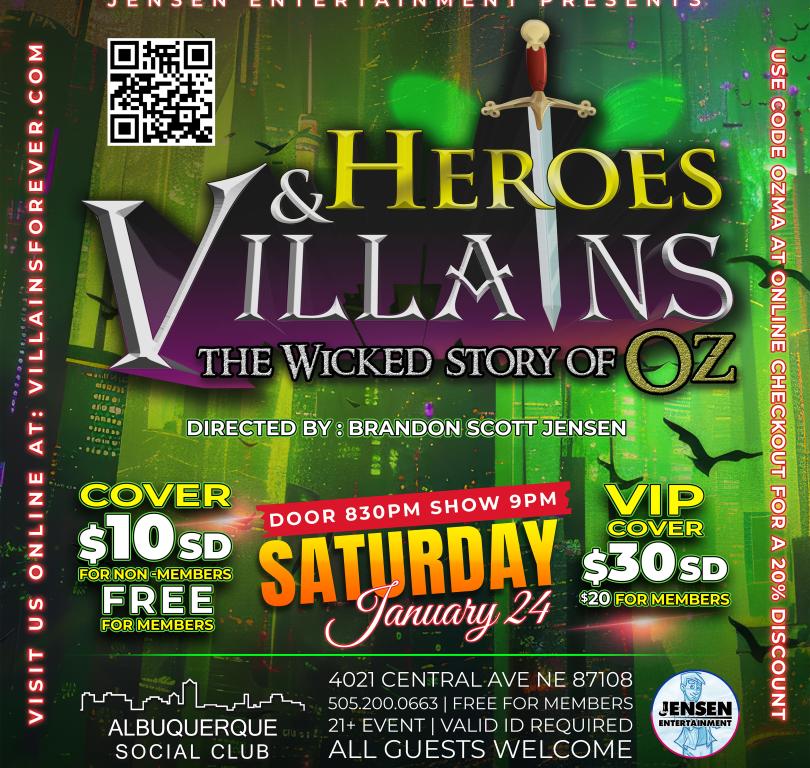 Good News to ALL Ozians! Heroes and Villains is bringing all of your favorite Wickedly Ozian characters to the stage to sing and dance for you! Cosplay, Drag and more!