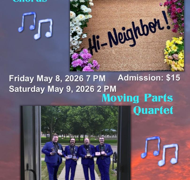 Hi Neighbor! NewMexichords Barbershop Chorus Annual Spring Show Presented By: NewMexiChords Barbershop Chorus Dates: May 8, 2026, May 9, 2026 Location: St. John's United Methodist Church 2626 Arizona St NE , Albuquerque, NM 87110 Email: info@newmexichords.groupanizer.com Phone: (505) 242-4451 Time: Friday at 7 PM | Saturday at 2 PM Price: $15.00 Visit Website Add to Trip Overview Barbershop harmonies performed by the NewMexichords, Albuquerque's first mixed gender barbershop chorus, with nationally known guest quartet, Moving Parts. Map