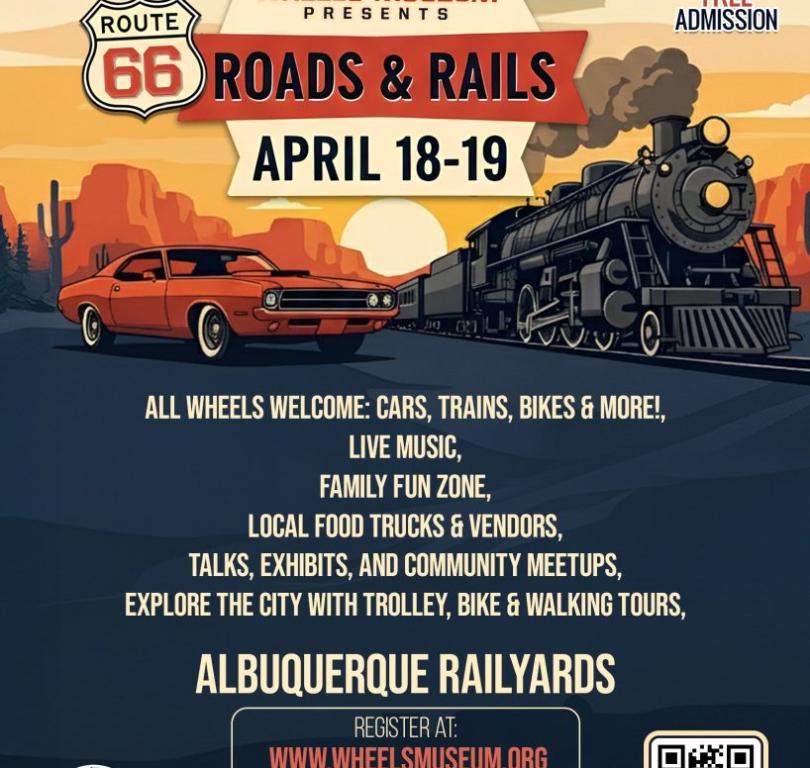 Wheels Museum presents: Route 66 - Roads & Rails Festival, April 18-19, 2026, at the Albuquerque Rail Yards!