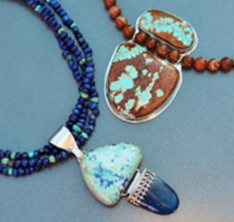 Sandy Johnson is a jewelry designer working primarily in silver, fabricating necklaces, bracelets, earrings, rings and chains. Geri Verble specializes in tribal and ethnic jewelry. She developed a passion for collecting ethnic beads and pendants while traveling with the Peace Corps.