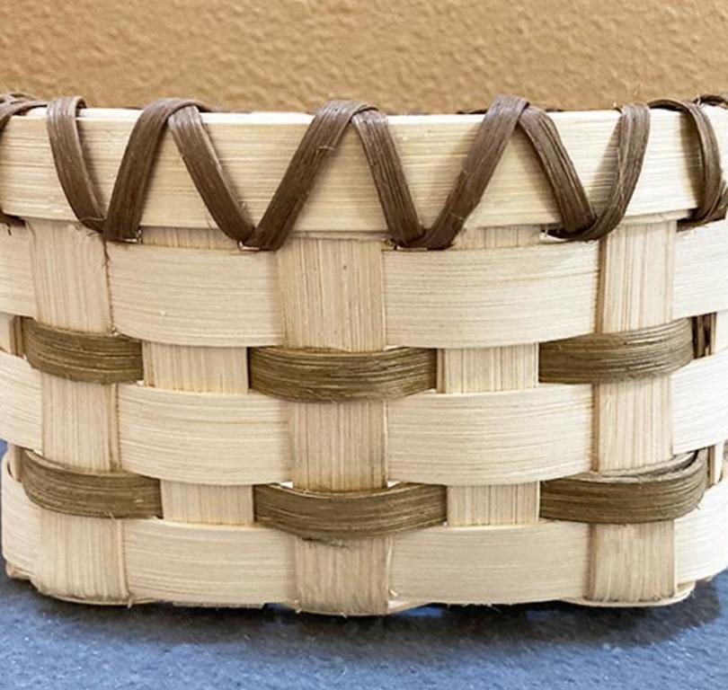 Weave a small trinket basket from natural and smoke colored flat reed.